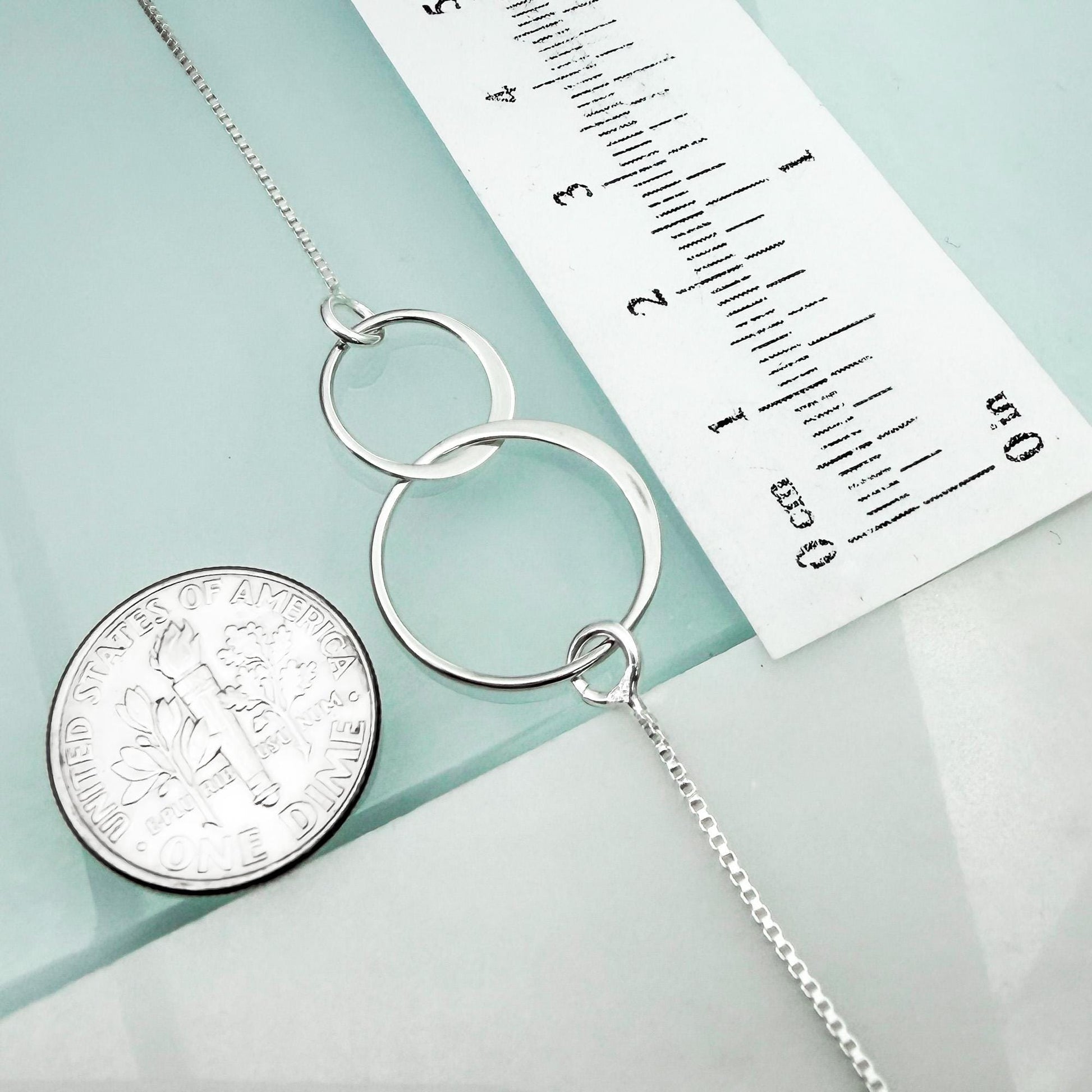 Two polished sterling silver circles linked together to represent an unbreakable bond. This timeless piece rests softly along the neckline and makes a heartfelt choice for Mother’s Day, birthdays, Christmas, or special milestones.