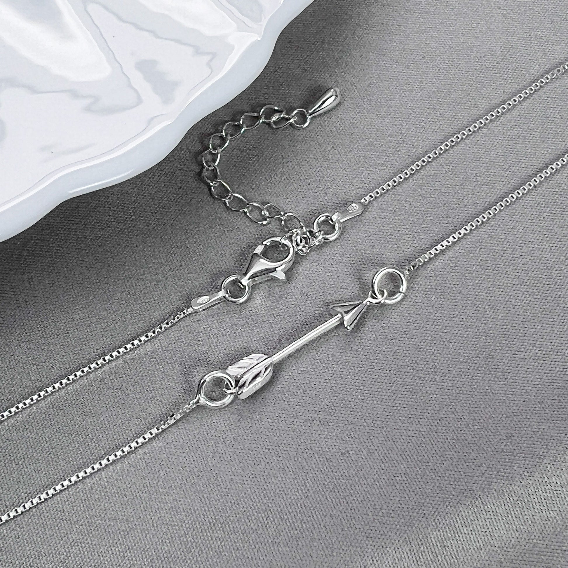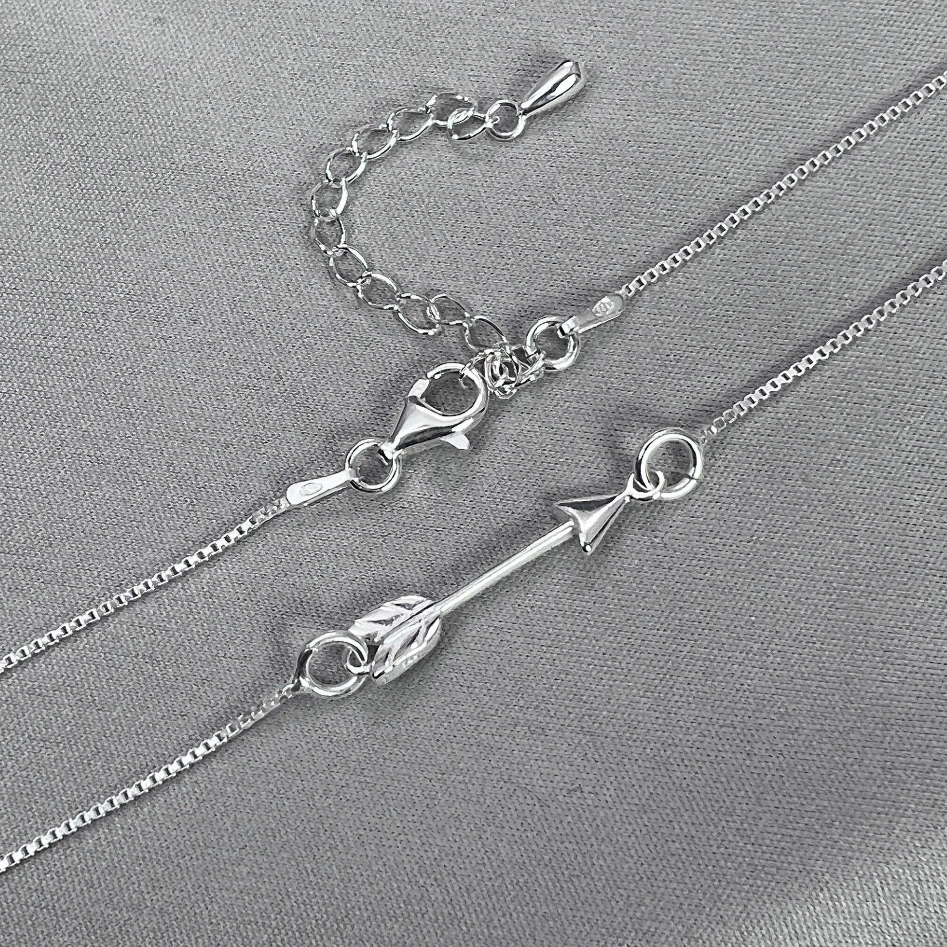 Necklace Length : Approximately 17 inches plus 2-inch extender. Arrow is connected to an Italian-made sterling silver box necklace chain - the chain type that does not easily get tangled.