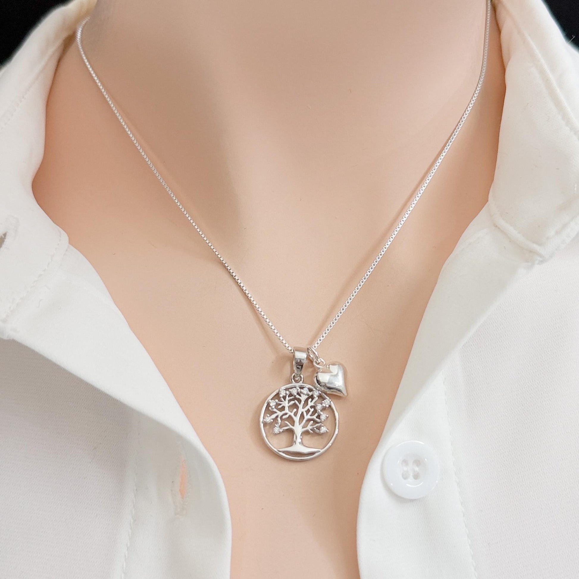 Sterling Silver Tree of Life Necklace, Mother in Law Gift, Thank You Family Tree Pendant with Heart Charm